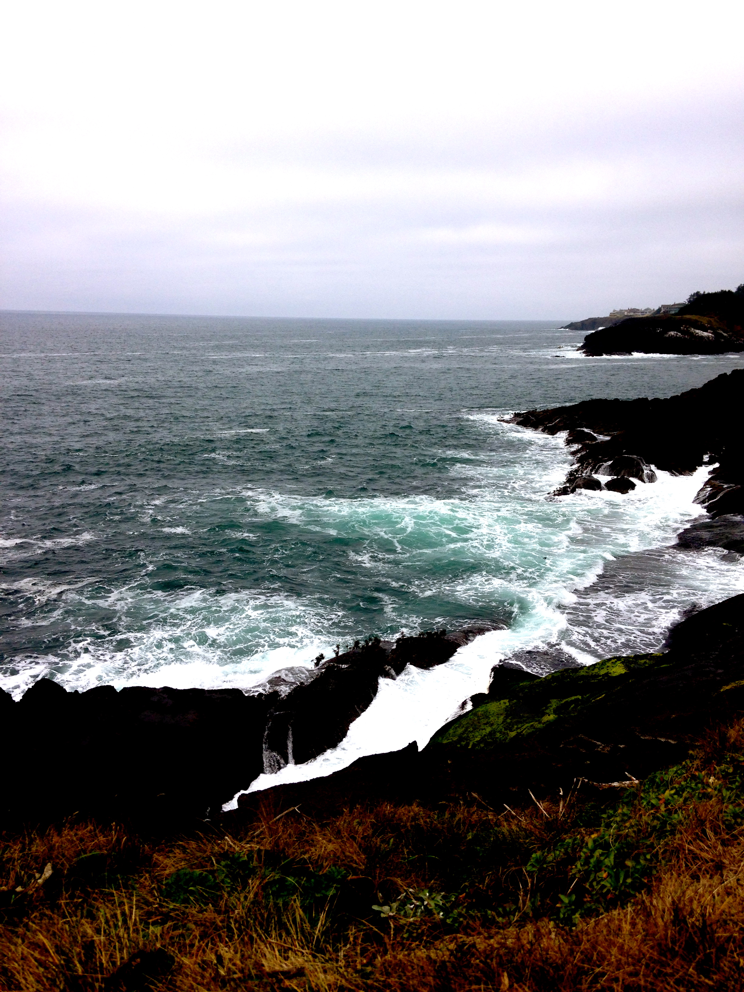 I woke up wanting to write, which is the effect of Oregon grey on me.   It sits on my skin with the whale spit in the fog, stirs my blood with long armed wrinkled fists of driftwood splayed out on a frothing coast.  All I knew when I flew in to Portland was physical: my body, there was nothing else to follow now.
