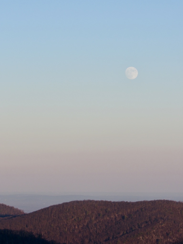 image, Waxing Moon over the fae pink wind of the Blue Ridge Mts, Shenandoah National Park this wknd