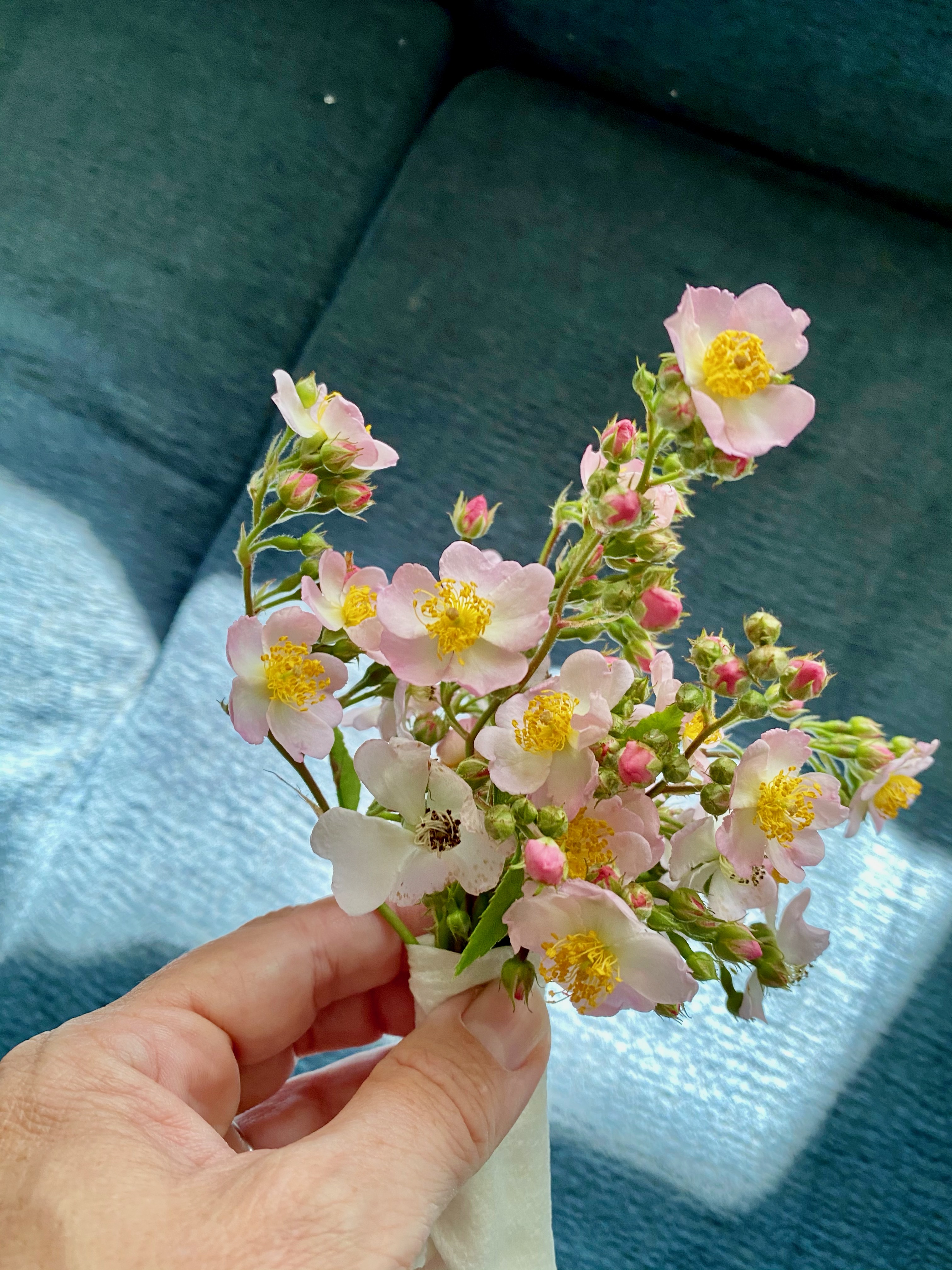 Maybe it was tending my second year flourish of potted herbs in the high white sun this morning. Week of wild roses on side of road vines. Lavender in full harvest already. I am thinking of what it is to connect to land, like rooted connect.