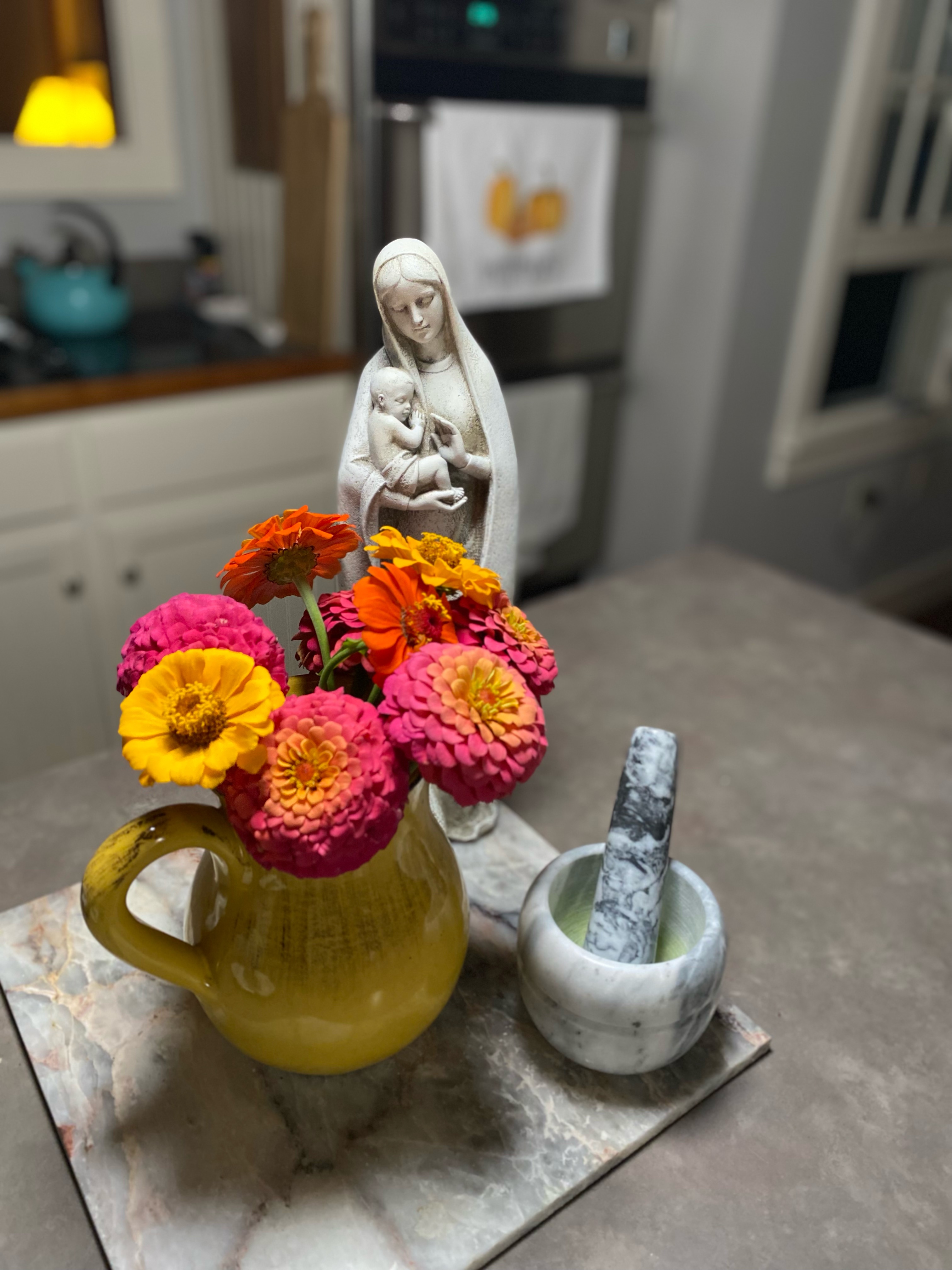 It is New Moon of Final Harvest. I tend. I reflect. Being with my baby daughter, which is the easiest sweetest deal on earth. Being with me, which can be way more hard. I offer all that I am. The shadow and the pain, the memories and those memories that need breath and space in wayyy off places within. Mother Mary for the Garden arrived after the Mabon moon: a gift from Erika and her nous so Catholic and powerFull Amen. I remain stunned at the generosity of family and friends this whole last year. I burn candles have few windows of devotional time but say thanks, speak small whispered prayers all day. Different lifetimes come back to me in the months since labor. The womb shaken awake, the dormancy of stories come rushing or fleeting, nueropeptide brain screams, hormones are SO Much More than that, the stories ohhh the stories, Blessed Be.